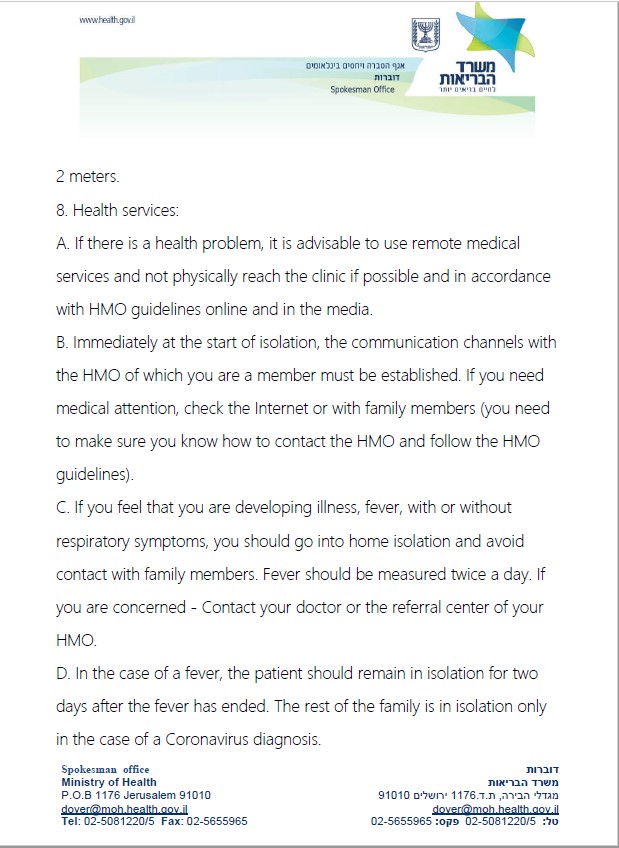 COVID-19: New Guidelines from Israel Ministry of Health effective March 17, 2020